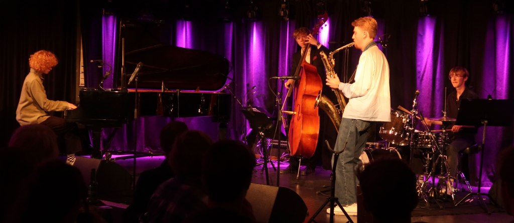 Så äntrade AGNES PERSSON scenen med sin KVARTETT. Agnes fick lite nostalgiska vibbar eftersom hon för sju år sedan var elev på Folkis och då spelade förband hos oss. Nu var hon här i egenskap av huvudakt. Och fick en massa kärlek från den övervägande unga publiken. Sköna låtar, fina solon, allt till ett superbra komp!
